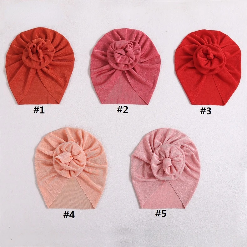 Niedliche Blume Baby Turban Hut Neugeborene Eis Seide Beanie Caps Kinder Mädchen Stirnbänder Kopfbedeckung Kleinkind Headwrap Elastischer Haarschmuck