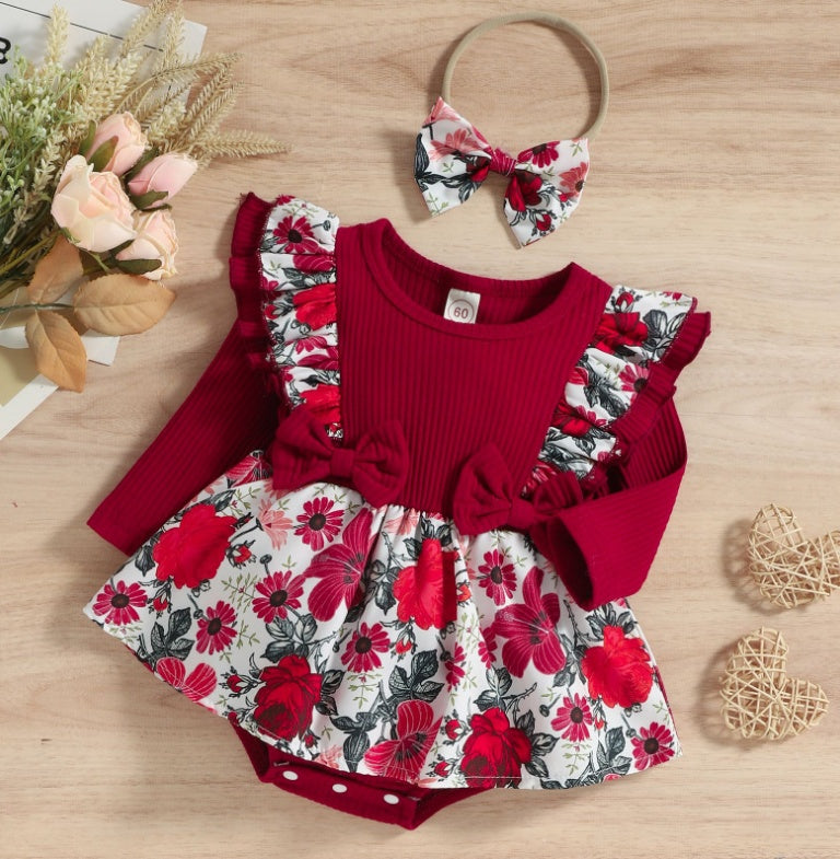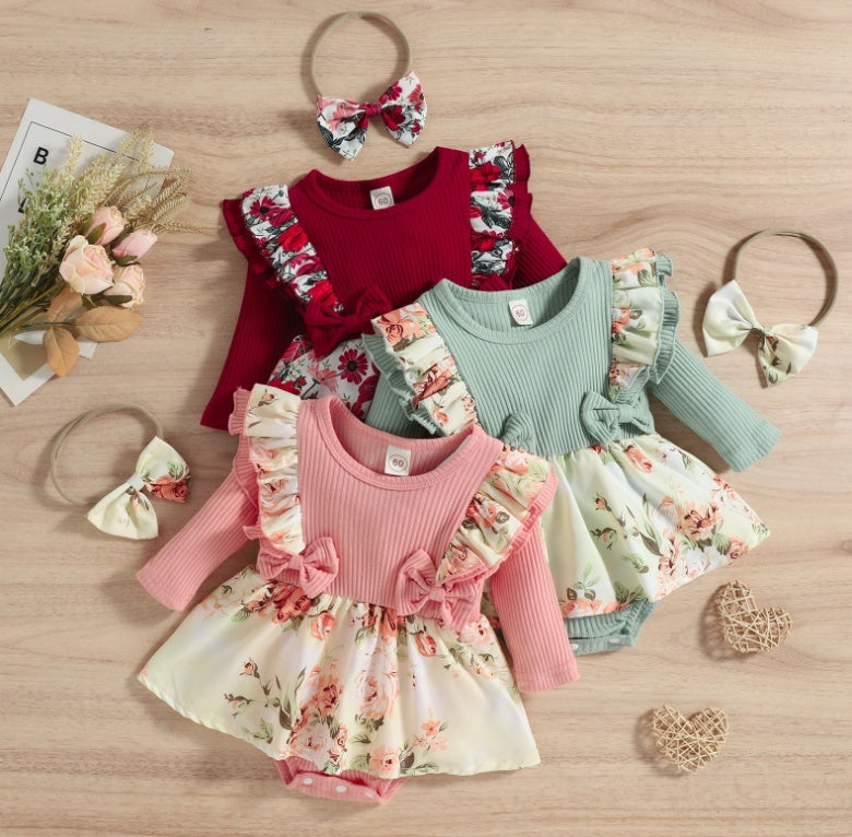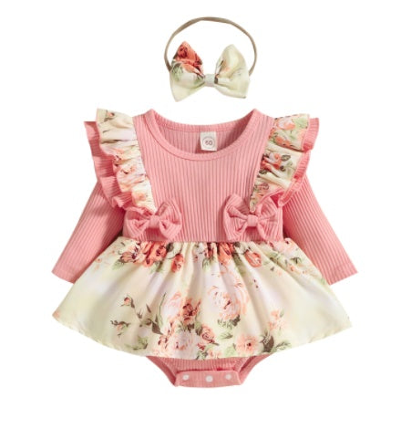 Girls Long Sleeve Pit Strip Double Layer Flying Sleeve Ha Jumpsuit