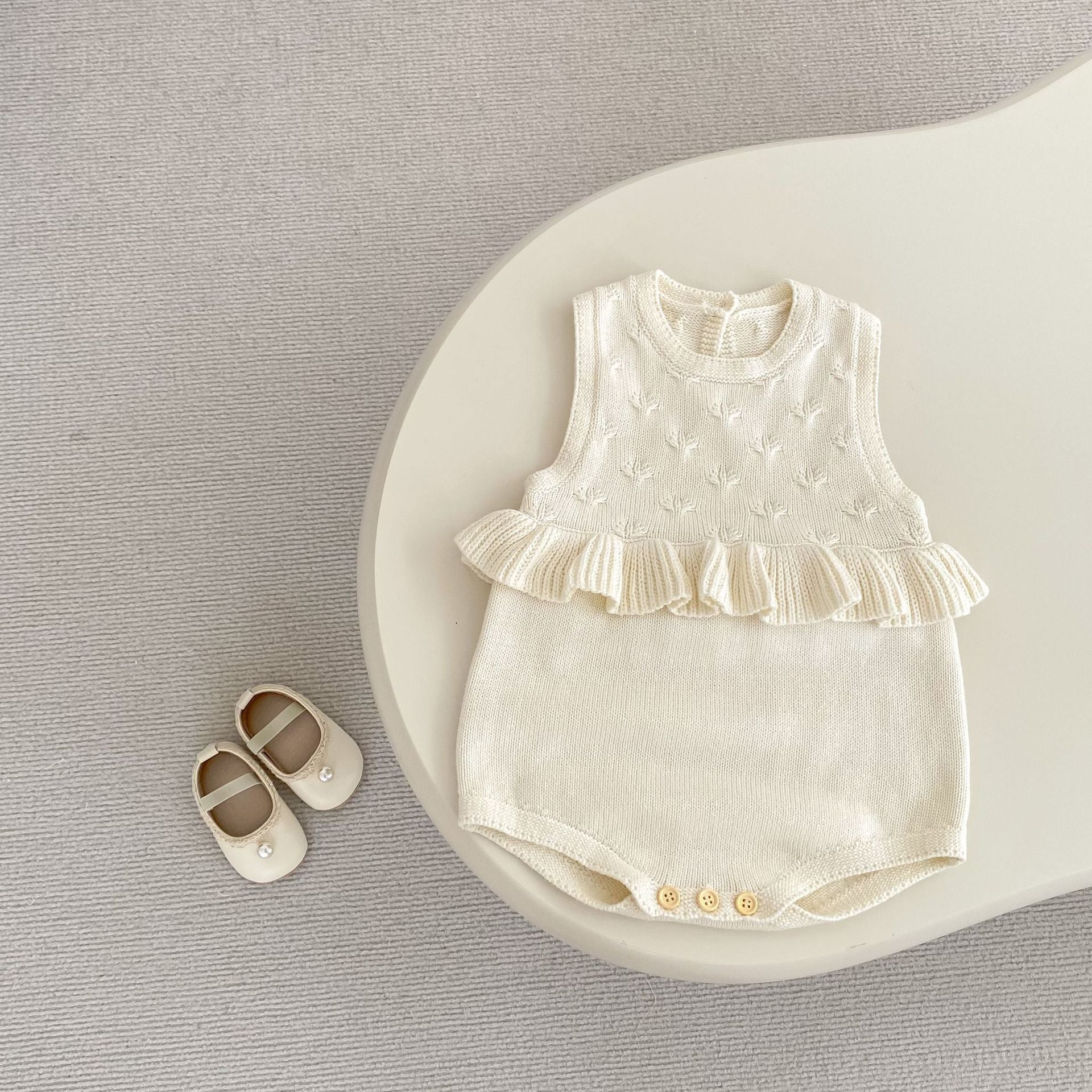 Baby Girl's Ruffle Vest Cute Fashionable Knitted Jacket All-matching Romper
