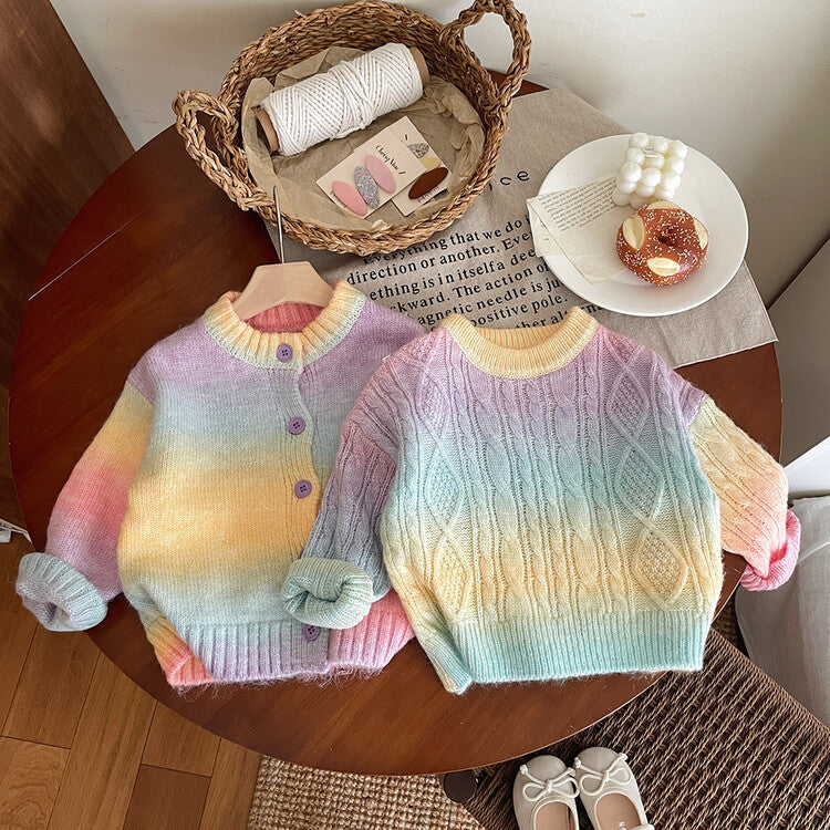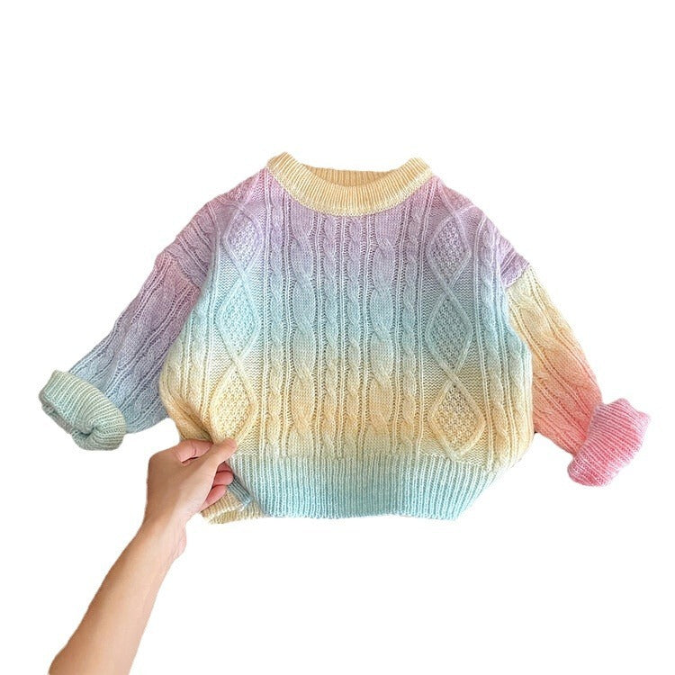 Girls' Gradient Thickened Sweater Round Neck